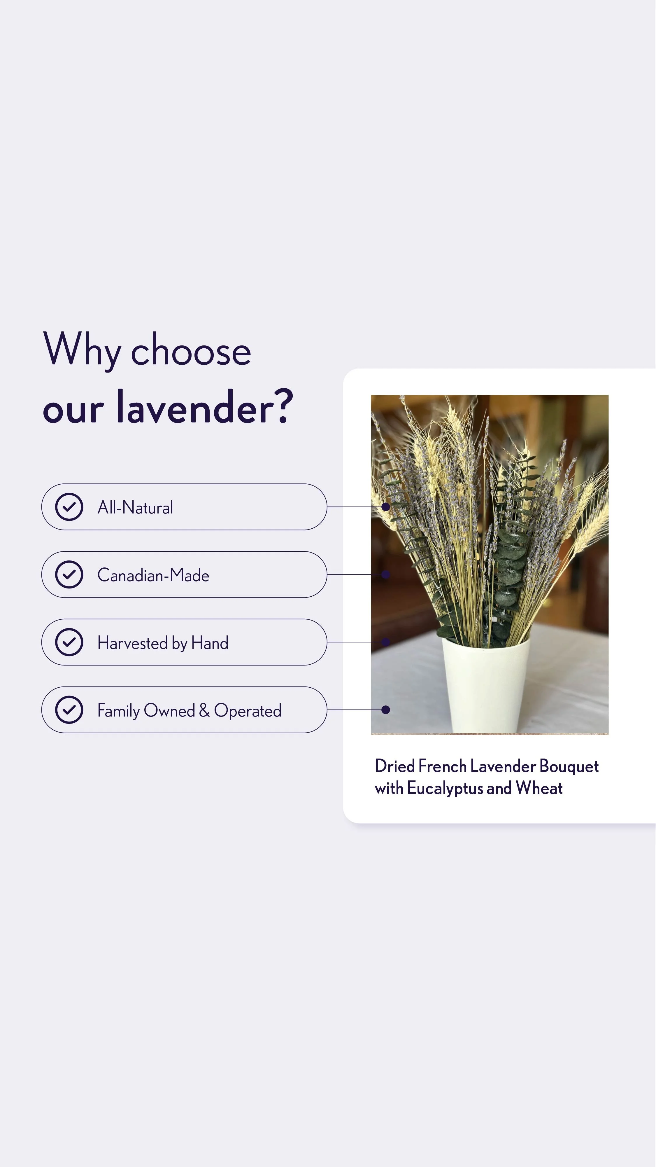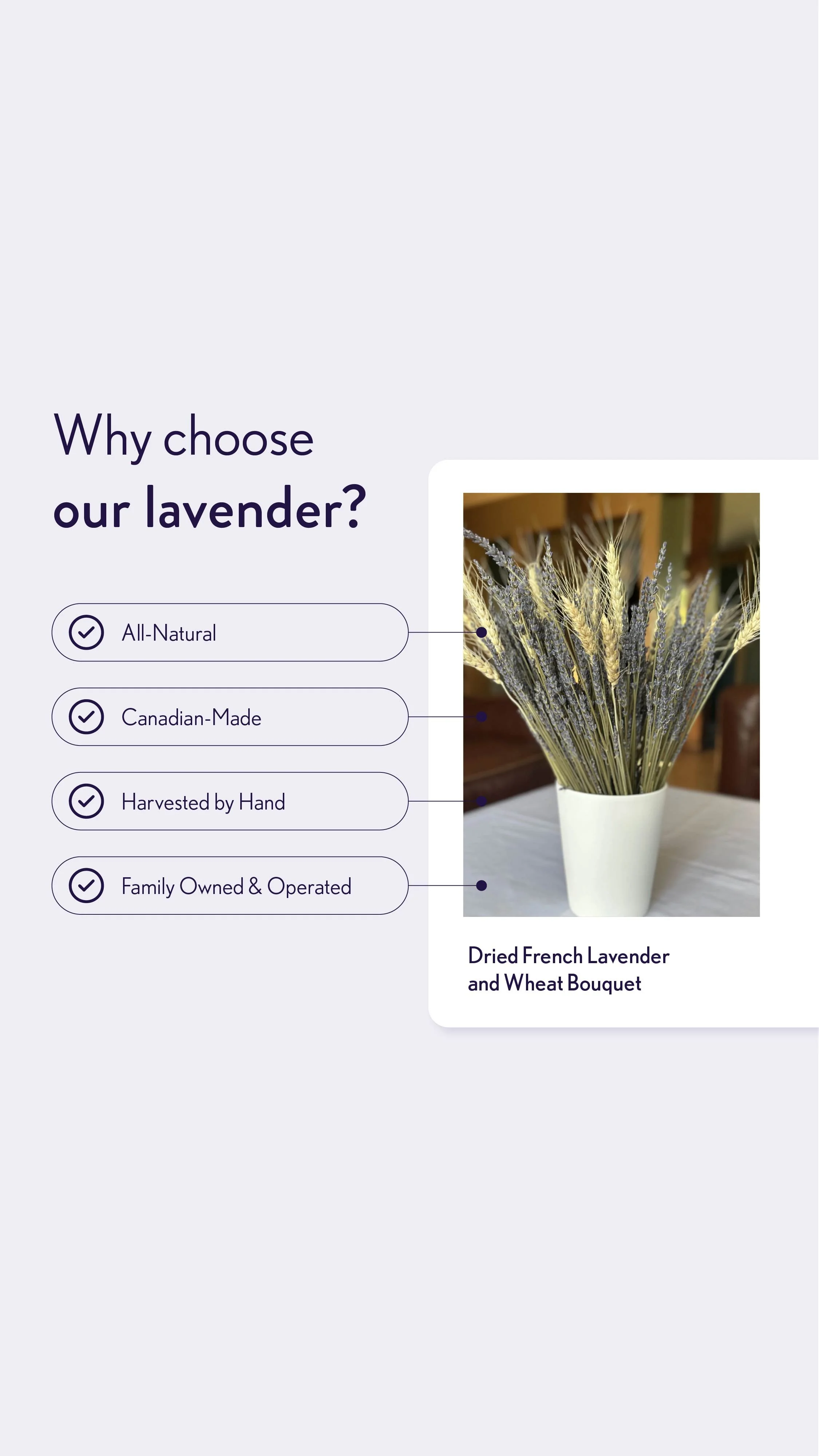 Order our wholesale lavender on Faire √ 50% off your first order (up to $150)*√ free returns on your first order & one year of free shipping Sign up for free Categories: All Wholesale Retail Shop All Wholesale Retail Quick View Dried French Lavender Bouquet with Eucalyptus and Wheat CA$51.00 Quick View Dried French Lavender and Wheat Bouquet CA$30.00 Quick View Dried Bulk Lavender from CA$28.00 Quick View Dried Lavender and Eucalyptus Bouquets CA$48.00 Quick View Lavender Gift Box CA$50.00 Quick View Wholesale Dried Eucalyptus and Lavender Bouquets - minimum order of 4 bouquets CA$28.50 Quick View Wholesale Dried English Lavender Mini Bunches - For quantities over 20 CA$4.75 Quick View Dried English Lavender Mini Bunches - For quantities under 20 CA$9.50 Quick View Wholesale Dried Lavender Bouquets - For quantities over 10 CA$12.50 Quick View Dried Lavender Bouquets - For quantities under 10 from CA$21.00 Quick View Wholesale Dried Lavender Sachets - For quantities over 10 from CA$6.25 Quick View Dried Lavender Sachets - For quantities under 10 from CA$12.50